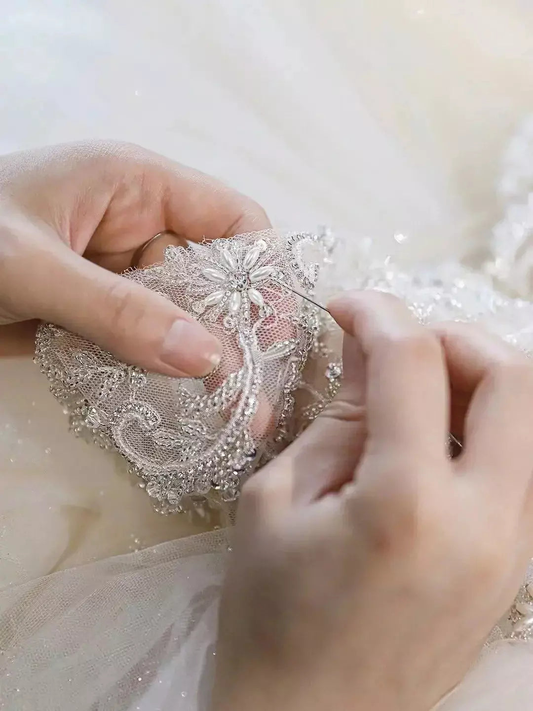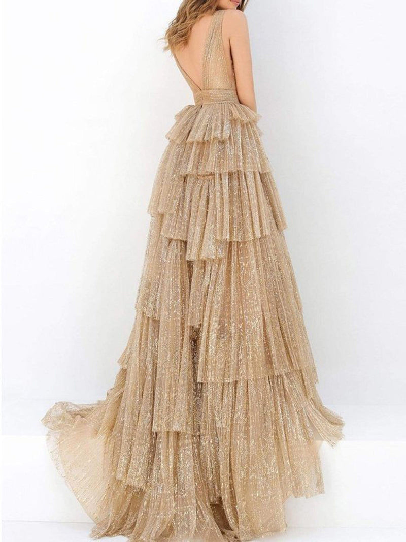 V-Neck Ruffled Sparkly Tulle Sleeveless Chapel Train Wedding Dress