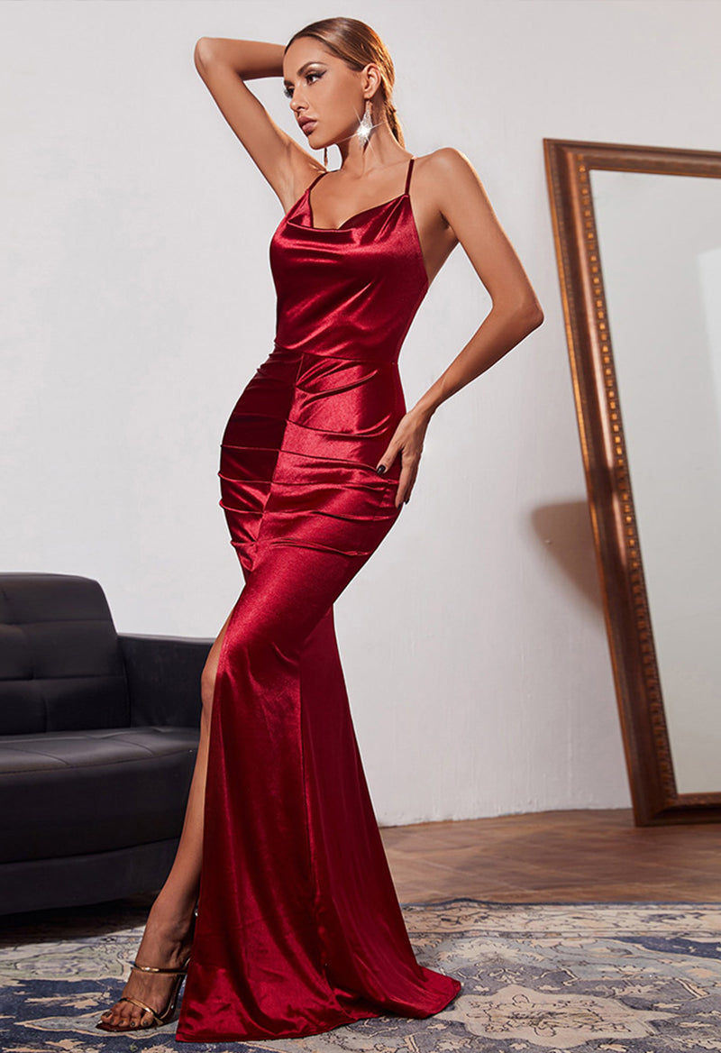 Straight Neck Sleeveless Satin Pockets Floor Length Bridesmaid Dress