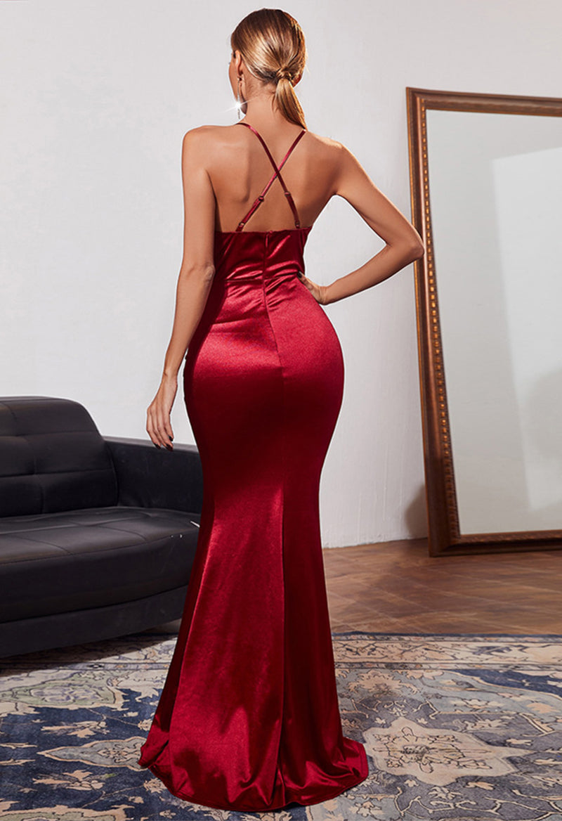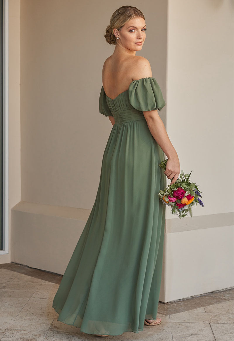 V-Neck Short-Sleeved Ruffled Slit Bridesmaid Dress