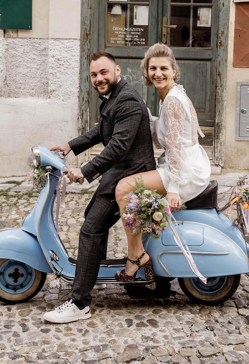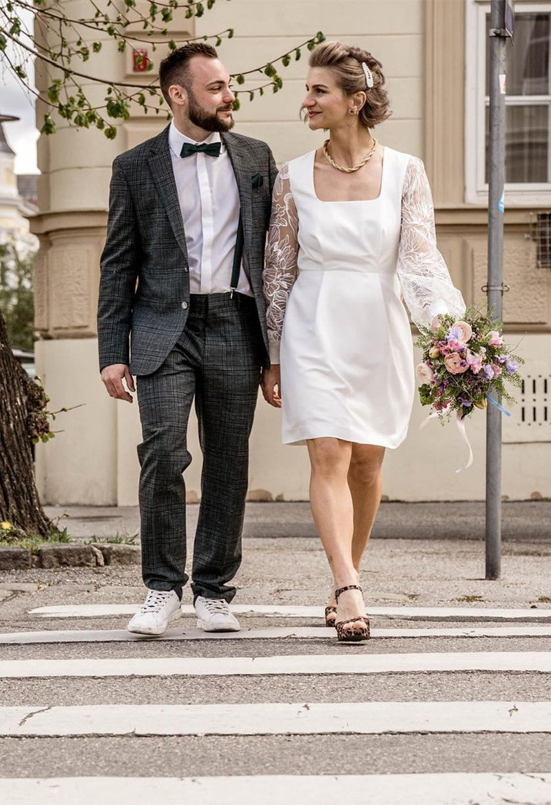 Square Neck Vintage Lantern Sleeve Knee Length Sheath Wedding Dress