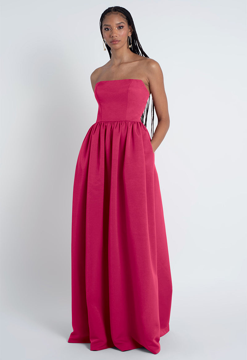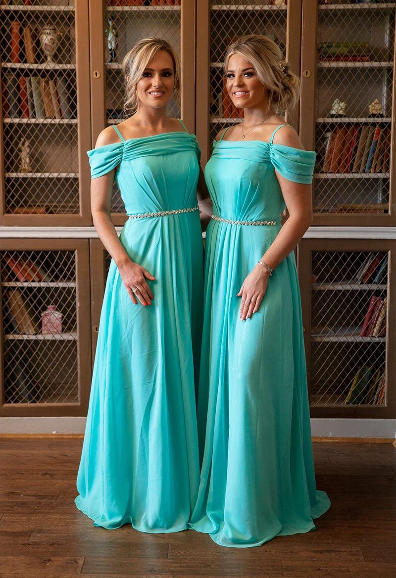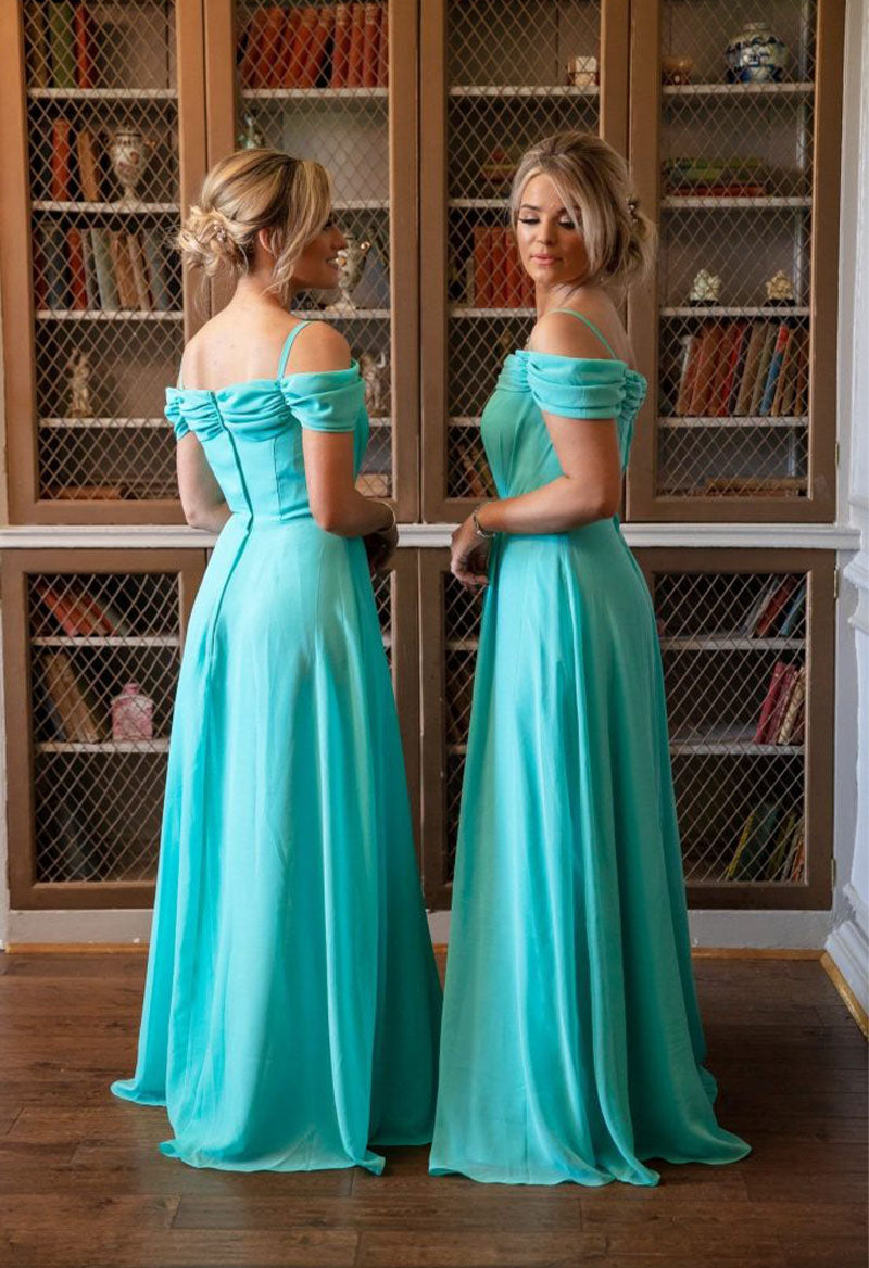 Vestido De Dama De Honor Hasta El Suelo De Gasa Plisada Con Cuello Cuadrado