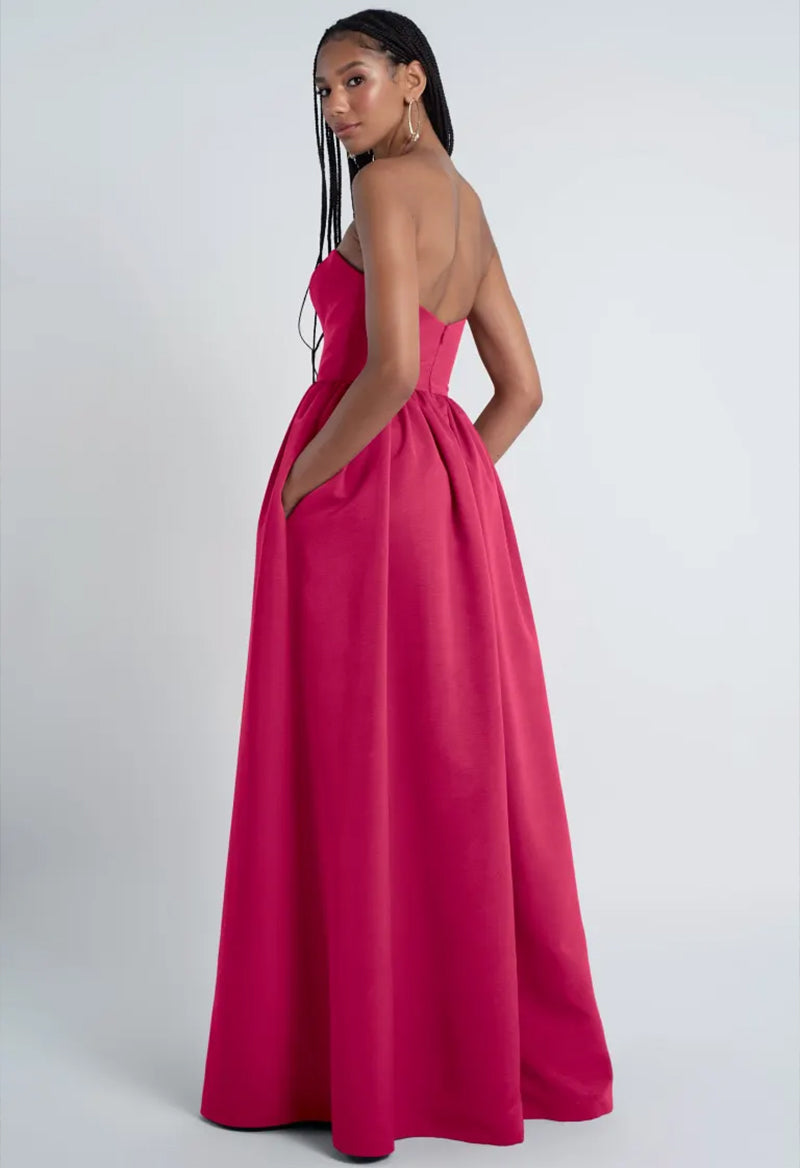 Straight Neck Sleeveless Satin Pockets Floor Length Bridesmaid Dress
