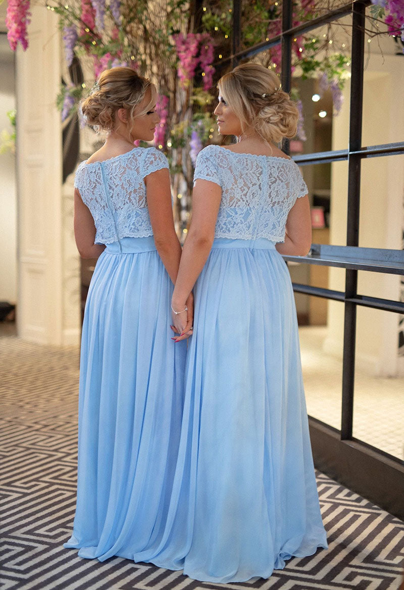 Vestido de dama de honor plisado de gasa con cuello barco y chaqueta