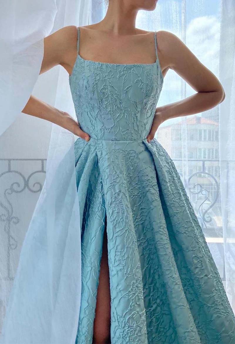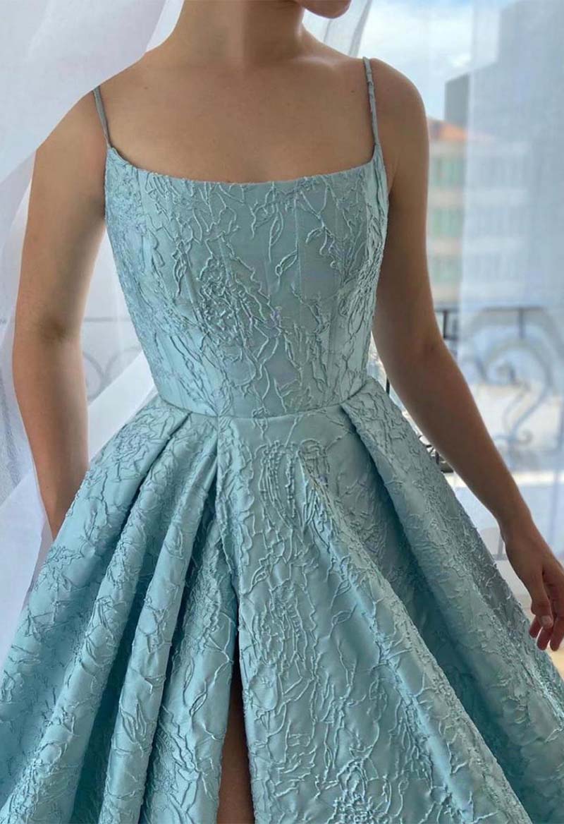 Experimente un lujo innegable con este exquisito vestido de noche sin mangas hasta el suelo de raso con abertura en el cuello cuadrado. Su elegante silueta y su hermoso brillo crean una apariencia impresionante, perfecta para ocasiones especiales. Una pieza exquisita que te garantizará una elegancia atemporal.