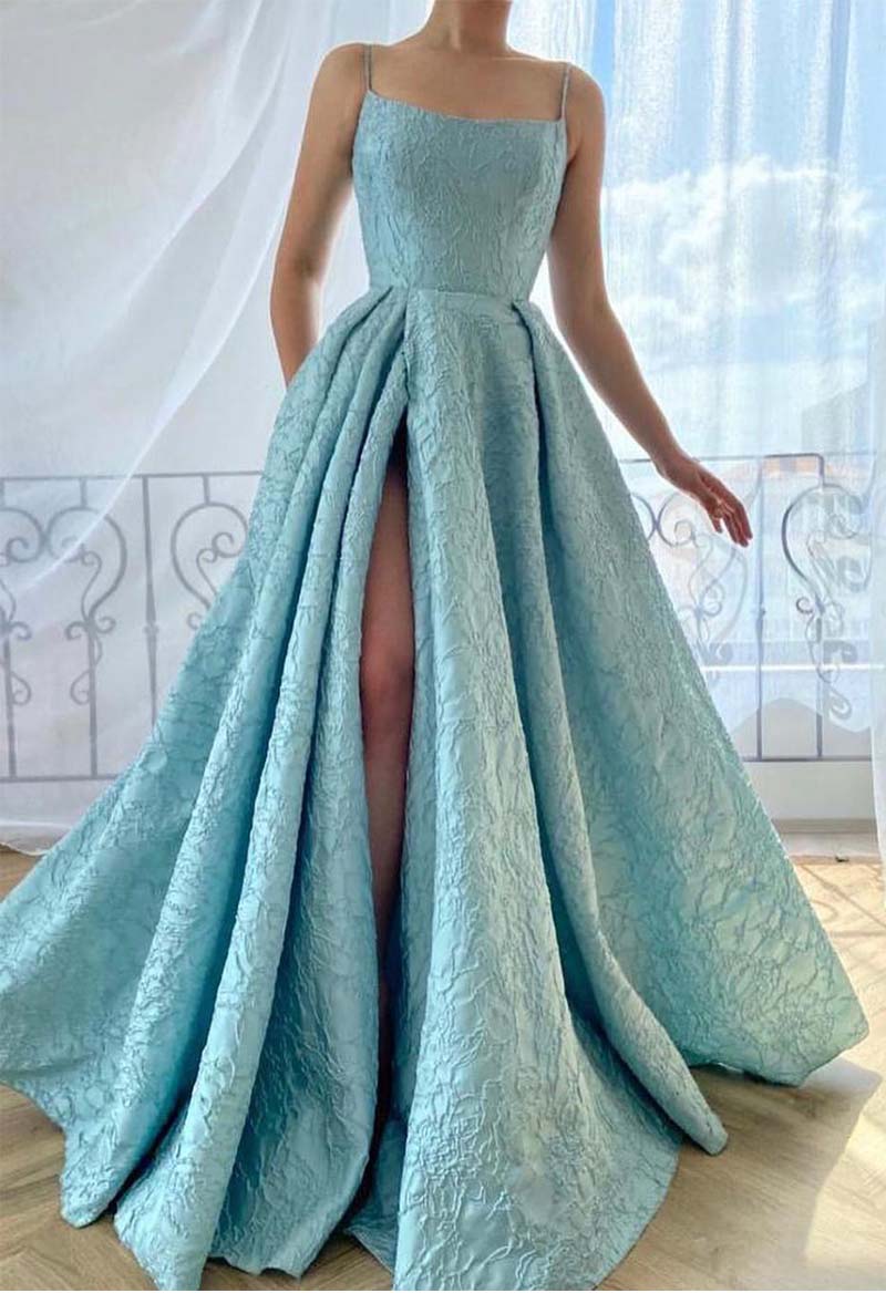 Vestido de noche sin mangas hasta el suelo de raso con abertura en el cuello cuadrado