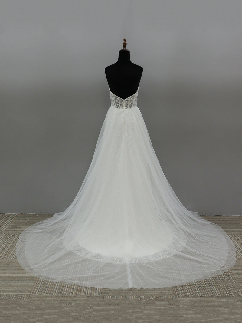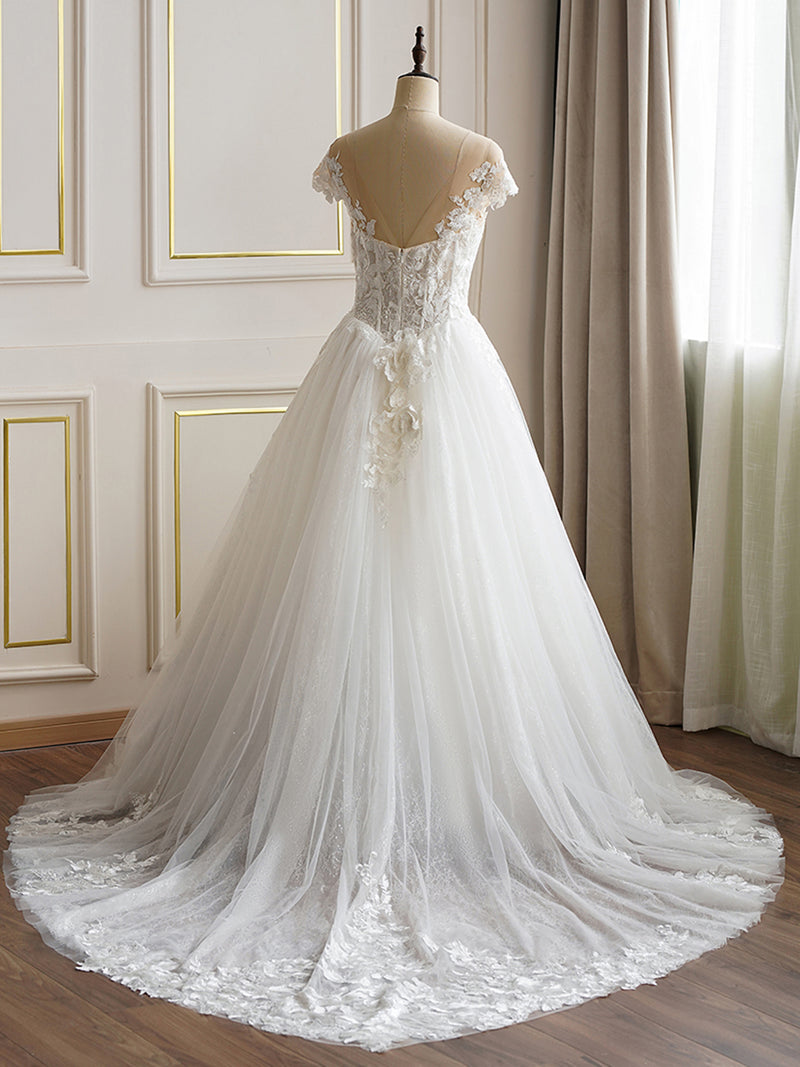 Robe de mariée avec jupe en tulle et décolleté illusion