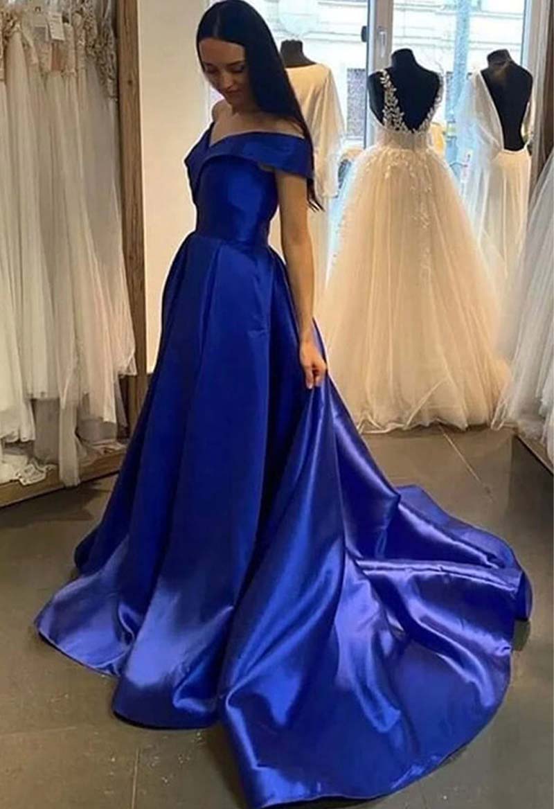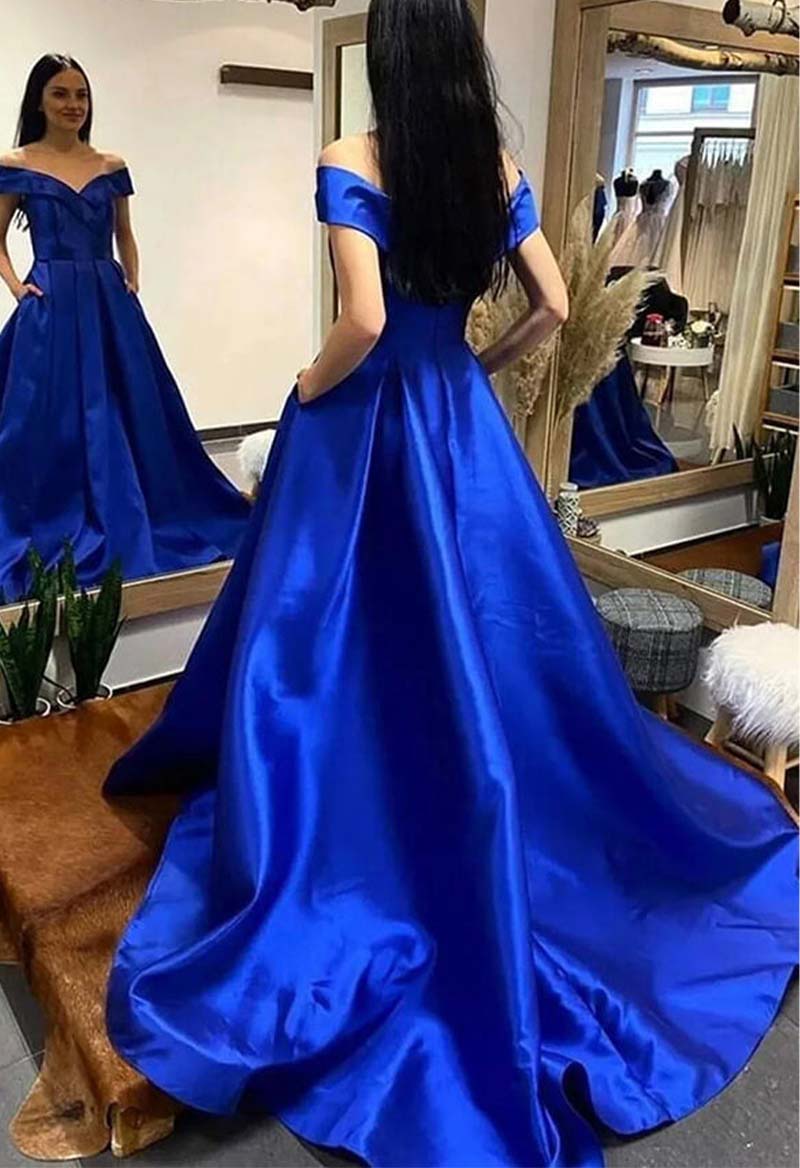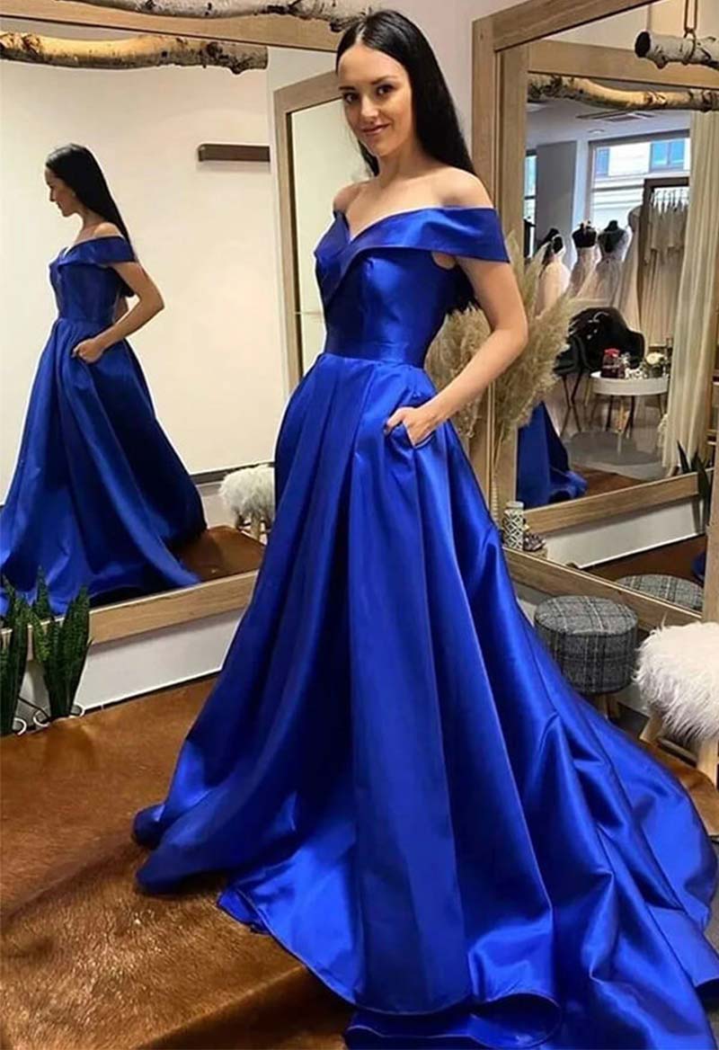 Robe de soirée en satin uni, col en V, sans manches, poche, traine chapelle