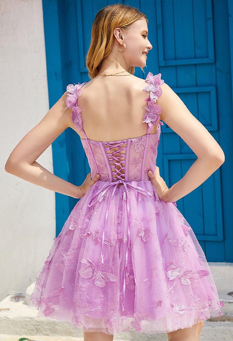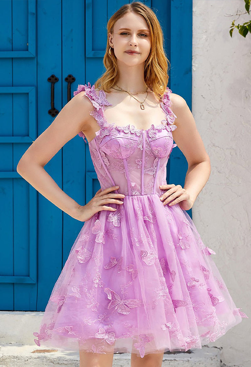 Soyez absolument magnifique dans cette robe de soirée courte en tulle papillon sans manches à col carré ! Il arbore une belle couche de tulle pour un look fantaisiste et flottant, et le style A-Line est si flatteur. Obtenez ce 10 parfait avec cet étourdissant ! #baveur