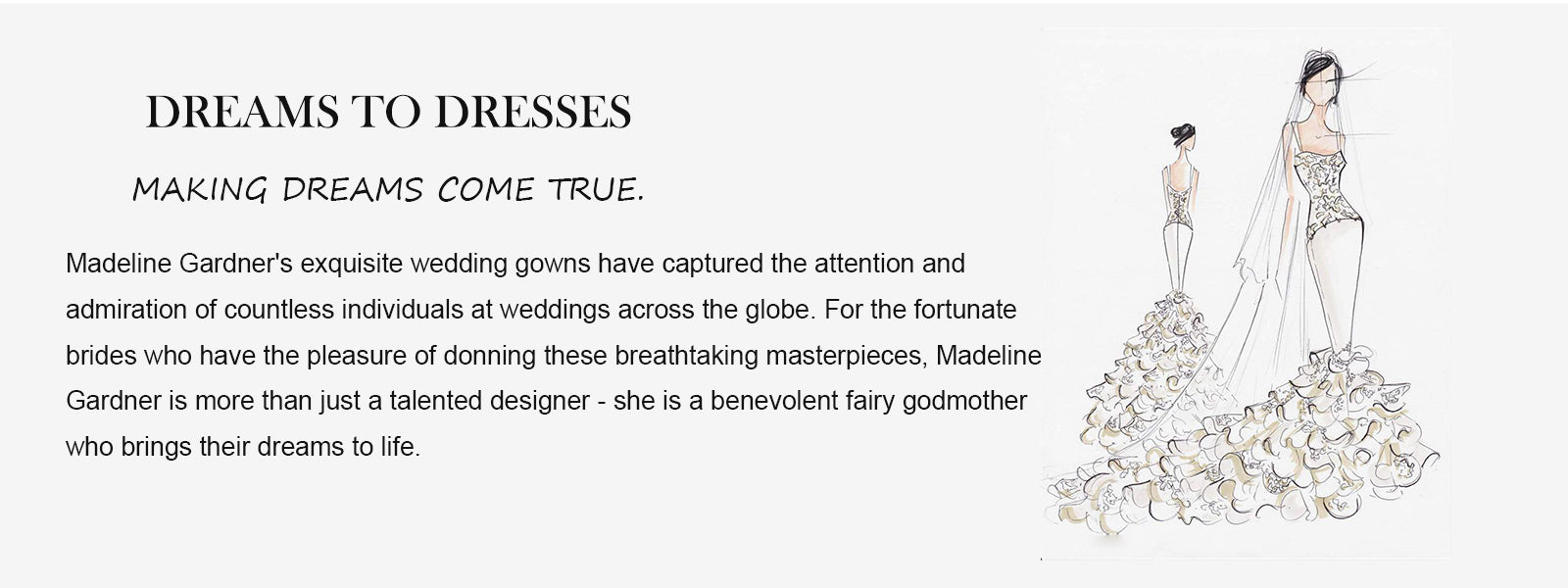 As said by our internationally renowned bridal designer, Madeline Gardner, our dresses are truly magical. Her amazing designs have been making millions of brides’ dreams come true all around the world. For more than 25 years, Madeline Gardner’s sensational wedding dress and evening gowns have been the guiding force behind Morilee’s remarkable success.