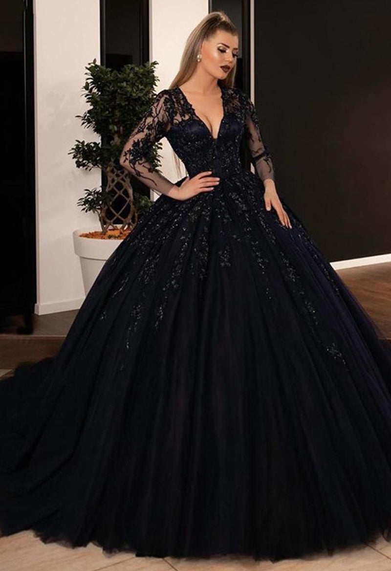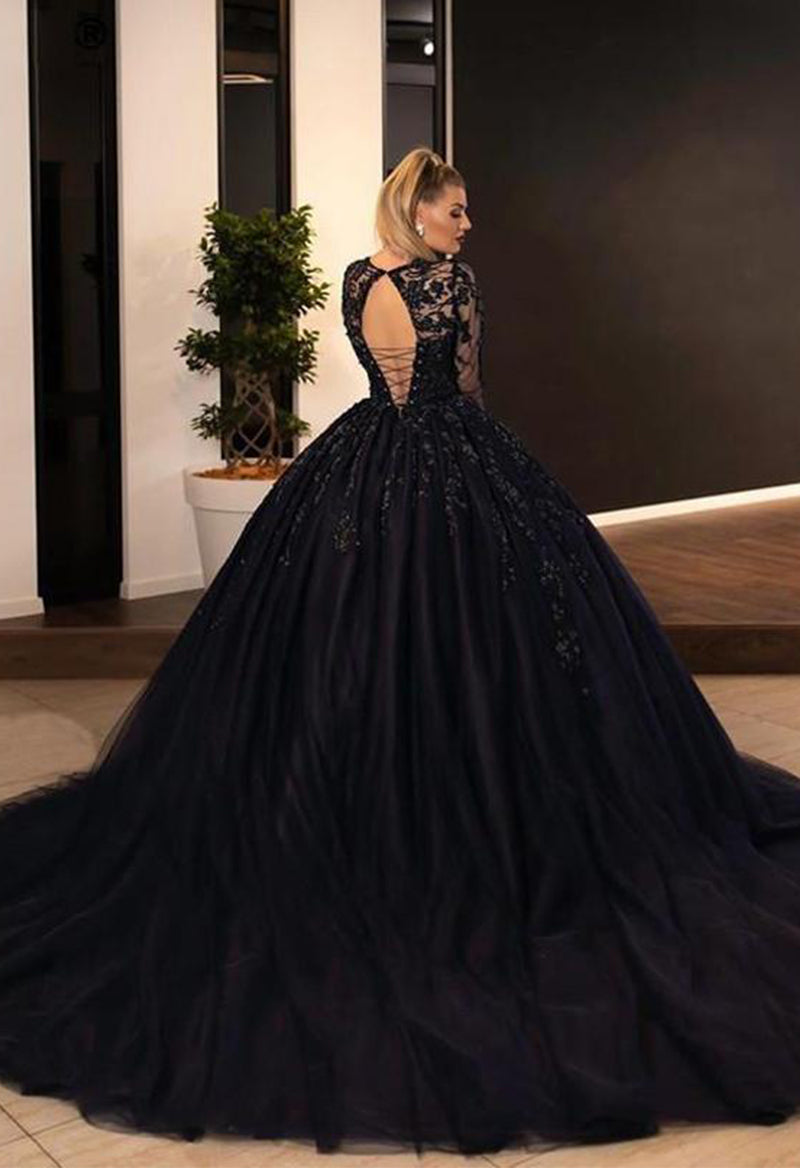 Sequenant Lace Long Sleeve Ball Gown Key Hole Wedding Dress